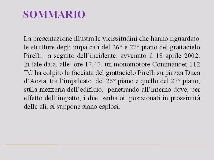 Seguono alcune slides tratte dalla relazione tecnica tenuta al SAIE 2009