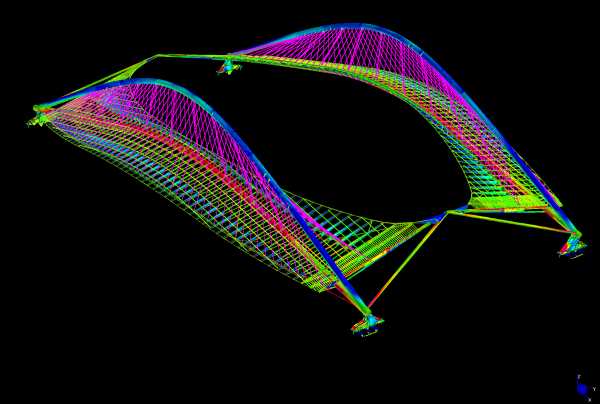 Le travi principali della copertura (GIRDERS) sono disposte ortogonalmente all'arco inferiore,