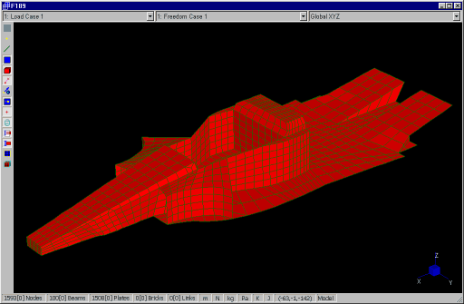 La superficie è modellata con elementi plate e shell. Sono stati utilizzati alcuni elementi brick per modellare localmente regioni a grande spessore all'interno della scatola.