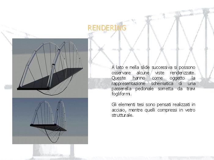 L’idea di affiancare in parallelo ad una trave due archi, che la assistano nello svolgimento della propria funzione strutturale, si riscontra già in ponti ferroviari tedeschi risalenti alla metà del XIX Secolo. Tali archi erano all’epoca collegati da elementi snelli che andavano a completare una struttura di tipo reticolare in cui fosse possibile con relativa facilità determinare le caratteristiche della sollecitazione. Lo sviluppo della tecnologia e la disponibilita' di software per il calcolo strutturale ci permettono oggi di studiare sistemi combinati arco-trave con una geometria più complessa, ovvero di analizzare ampi ventagli di possibilità in tempi brevi. Sulla base di queste considerazioni il Prof. Ing. Maurizio Froli ha ideato particolari sistemi combinati composti da due archi e una trave che ha denominato “travi fogliformi”. Lo studio ha come obiettivi la verifica delle proprietà di una trave fogliforme per mezzo del software di calcolo Straus7 e, sempre con l'ausilio di quest'ultimo, la ricerca dell'andamento del peso totale della struttura al variare dei parametri geometrici che la definiscono. CONTINUA |