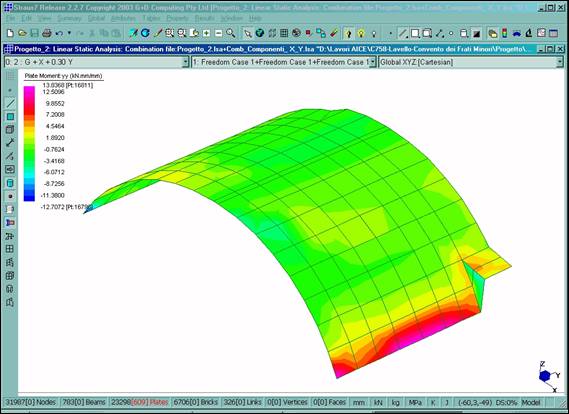 Fig. 16 – Diagramma del momento flettente Myy comb. n°1 nella volta della sala su via G. Bruno.