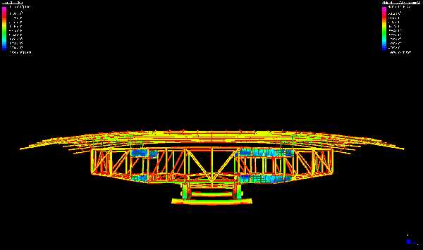 Oltre ai pesi propri, ai sovraccarichi di normativa ed al peso della neve, riveste particolare interesse l’azione del vento in particolare sul frangisole superiore che, data la leggerezza delle sue strutture portanti, può essere particolarmente sensibile alle azioni di tipo dinamico. E’ stata prevista a tale proposito una prova in galleria del vento (presso il Politecnico di Milano) per definire l’insieme delle azioni che il vento può esercitare sulla struttura a conferma dei dati assunti per il primo dimensionamento della struttura.