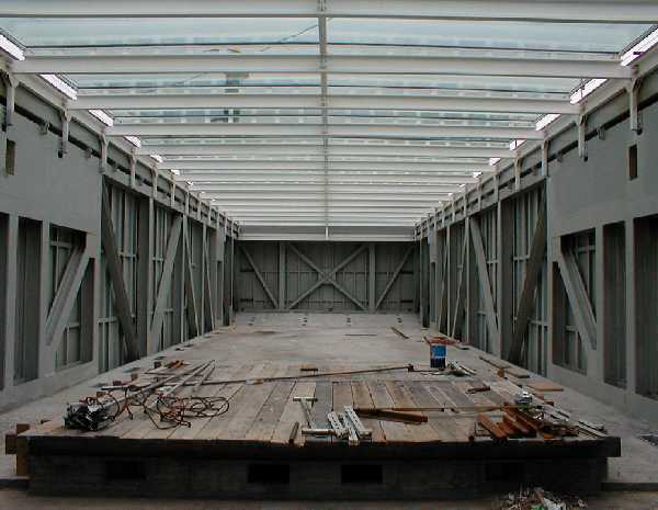 Le pareti ed il fondo sono rivestite da pannelli d’acciaio in vista; la copertura è formata da una struttura leggera in acciaio ed è completamente vetrata.