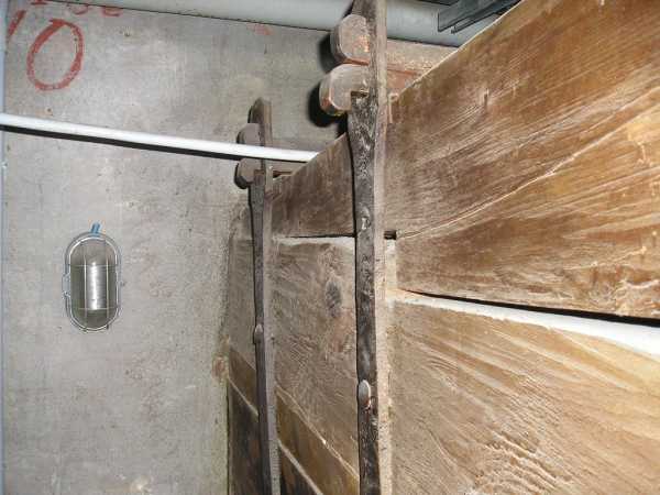 Il solaio della sala delle scenografie (fig 6) è visibile nel locale sottostante, l’ambiente in cui è visibile la centinatura della volta fonica. L’orditura principale è costituita da particolari travi composte (fig 7) su cui poggiano i travetti di sostegno delle pianelle. Tutto il solaio è stato oggetto di molteplici interventi, fra i quali il più recente è costituito in una diagnosi e in un successivo intervento di restauro, come mostrano gli abbondanti segni di sondaggi negli appoggi, le stuccature delle fessure e le cuciture con barre inghisate.