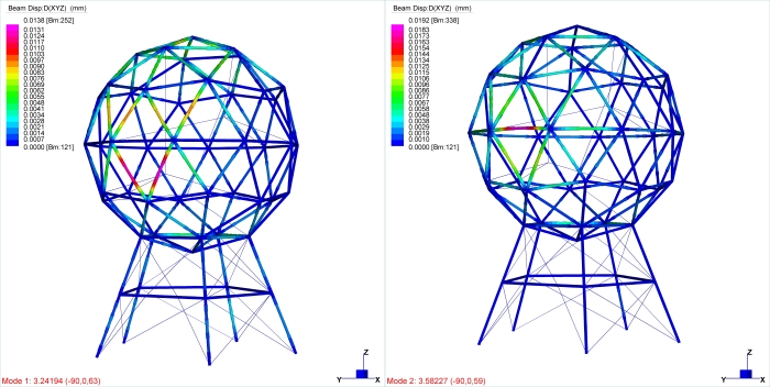 Sul modello è stata eseguita un’analisi statica lineare, un’analisi dinamica lineare con spettro di risposta ed un’analisi di buckling per saggiare la sensibilità della struttura a fenomeni di instabilità globale.