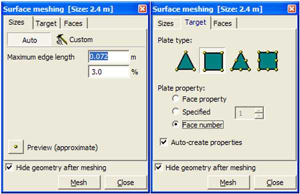 Figura 3 - Parametri di generazione automatica di una mesh quadrangolare.