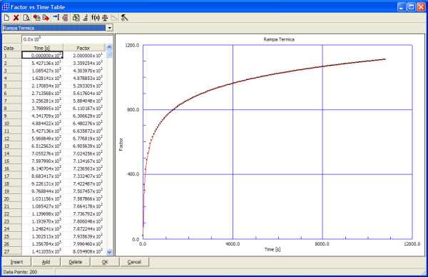 Nella sezione "Table" della finestra di dialogo per la definizione dei materiali è possibile assegnare le tabelle in relazione alla variazione delle suddette grandezze con la temperatura od il tempo.
