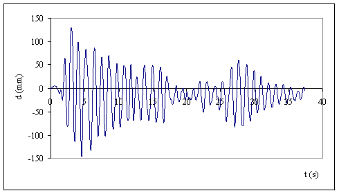 Fig. 13 Spostamento in sommità per l’accelerogramma di Tolmezzo