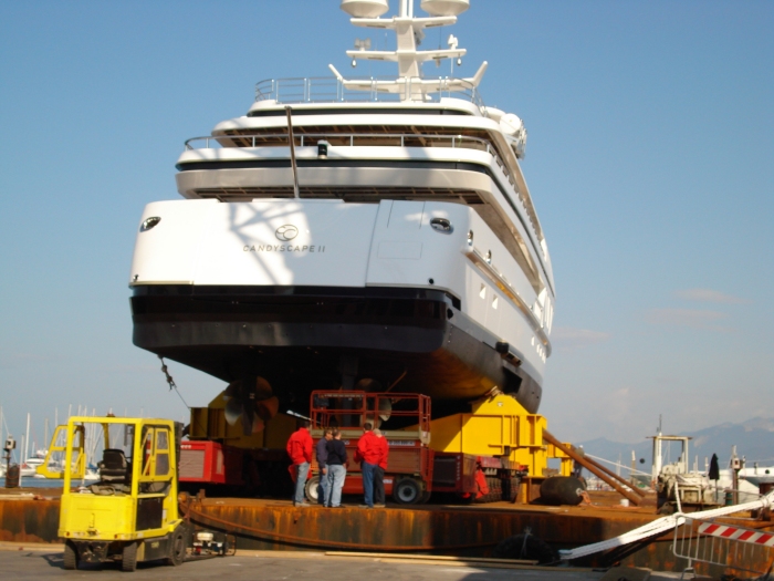 Dimensioni MegaYacht: lunghezza 62 m; larghezza ~ 10 m; altezza ~ 8 m