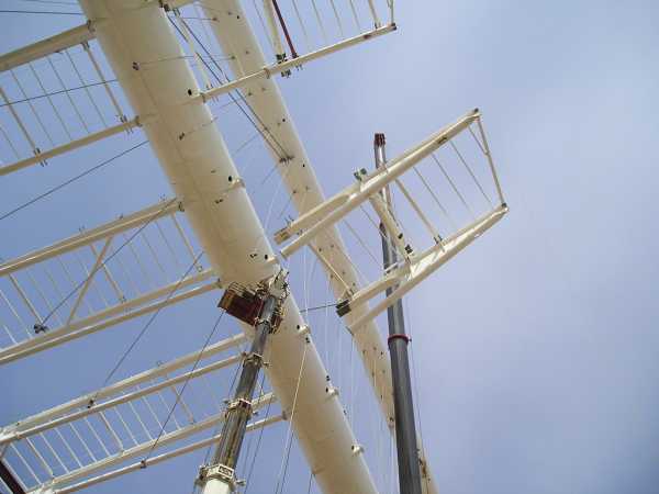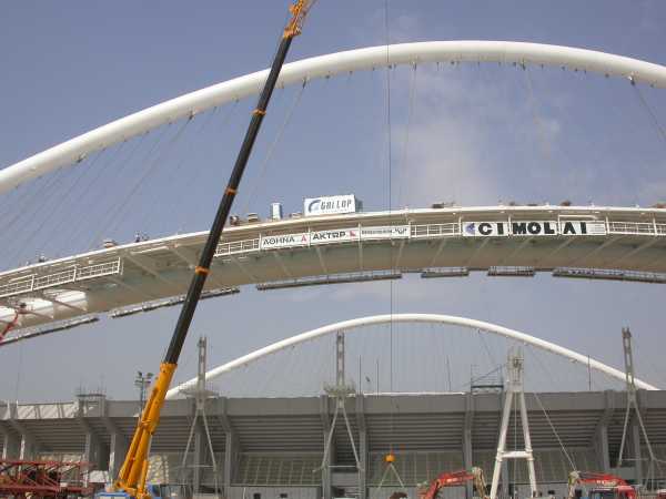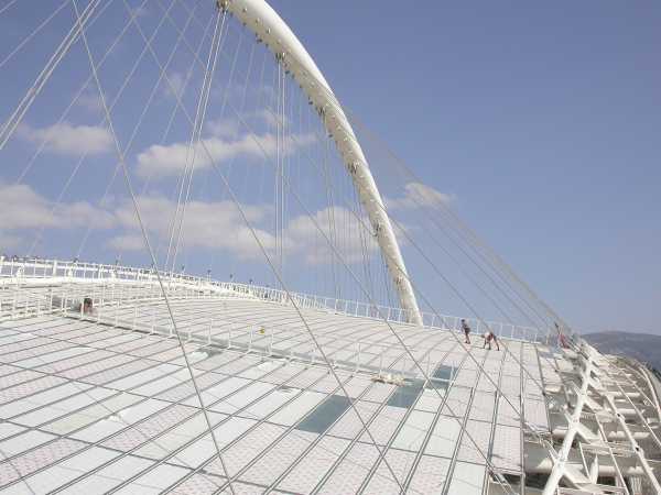 sono incastrate su questo, e sorrette verso l'estremita' a sbalzo da funi ancorate all'arco superiore.