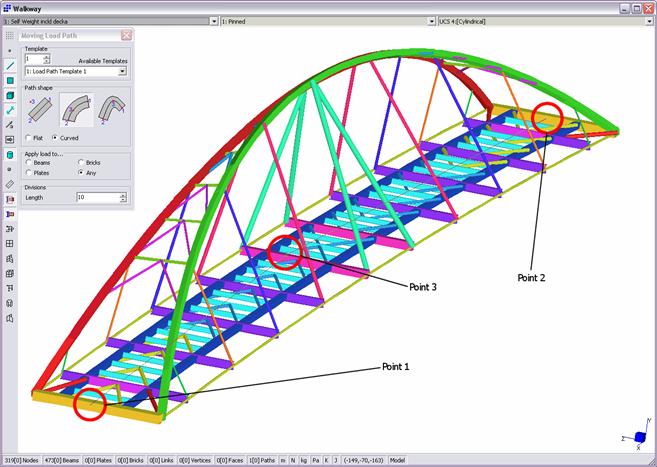 Il percorso di carico, nell’esempio, può essere assegnato clickando su tre punti (che definiscono univocamente un cerchio) della passerella arcuata.
