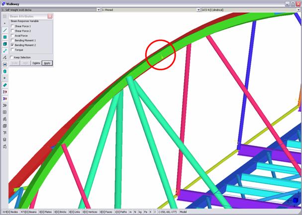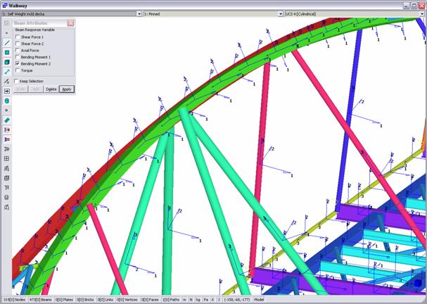 Il passo successivo consiste nel definire il percorso del carico direttamente nel modello Straus7 ad elementi beam. Questa operazione è facile come creare un elemento.