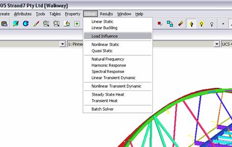 Quanto fatto sino ad ora è molto utile per capire il comportamento della struttura. Per passare al calcolo, occorrerebbe però scegliere ora le condizioni di carico ritenute significative. Quest’operazione, di per sè molto tediosa, può essere svolta automaticamente con Straus7 selezionando I risultati dalla finestra Load Influence Combination