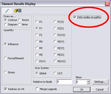 Se interessa la sola linea di influenza effettiva (cioè quella collegata all’effettivo percorso del carico) basta settare l’opzione Only nodes on paths.