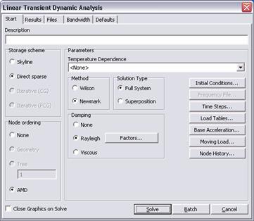 Per passare ora alla considerazione degli effetti dinamici legati all’effettivo passaggio del carico, tutto quello che c’è da fare è selezionare uno dei solutori Transient Dynamic. Nel caso in esame si utilizza il solutore lineare.
