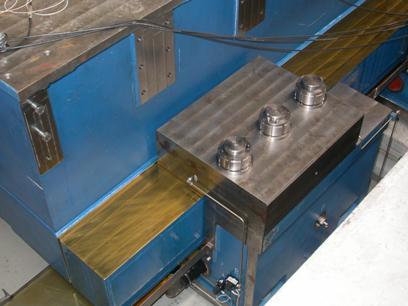 La tavola vibrante è vincolata da guide che impediscono il movimento in direzione verticale (ribaltamento) e che ne impediscono lo sbandamento al di fuori dell’asse di funzionamento. Un meato di olio in pressione con spessore di 0.07 mm consente lo scorrimento con attrito pressappoco nullo tra basamento e tavola (Figura 7). Il meato di olio è stato modellato con elementi truss che simulano la rigidezza dell’area di olio in pressione considerata.