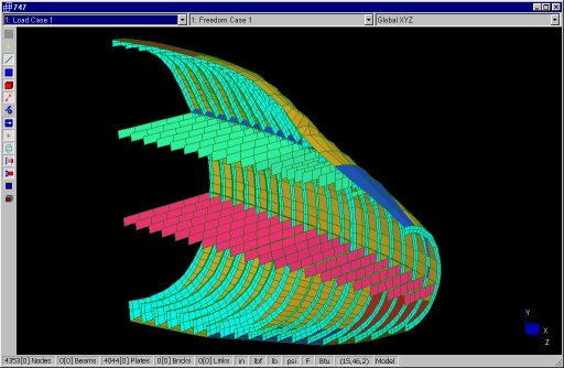 Dettaglio della struttura interna dell'ogiva di un 747. In questo tipo di struttura, la superficie e gli irrigidimenti sono creati automaticamente con gli strumenti di lofting.
