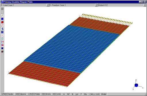 Un aspetto importante dell'analisi di lamiere chiodate è la distribuzione della forza di taglio nei chiodi. Nella mesh in Straus7, i chiodi vengono rappresentati con elementi beam. Si tiene conto anche della distanza tra i piani neutri delle lamiere.