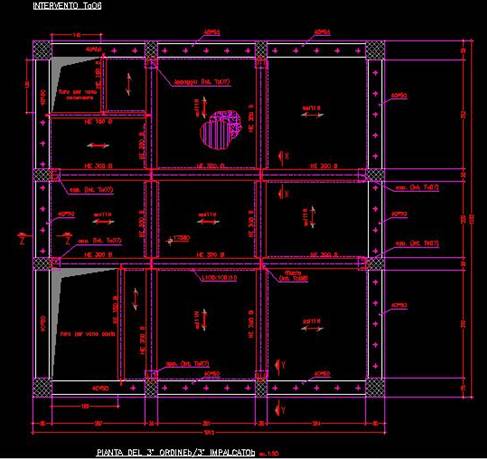 4. realizzazione di un solaio metallico, a quota intermedia fra l’attuale 2° e 3°, efficacemente connesso all’ingiro, mediante agganci fra la soletta e il nuovo cordolo a farsi;