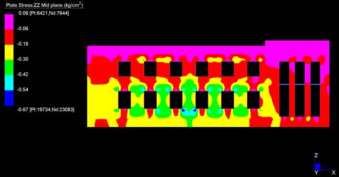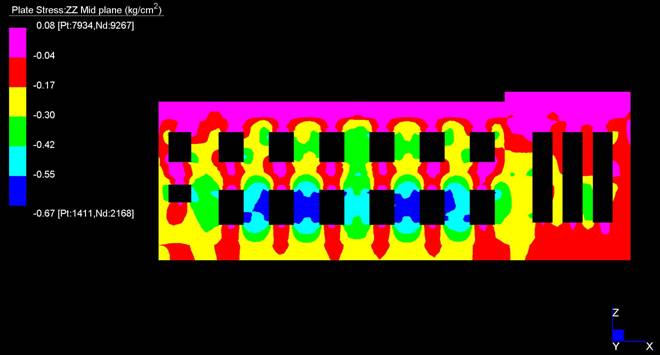Figura 26– Stato tensionale del nuovo graticcio di fondazione della torre