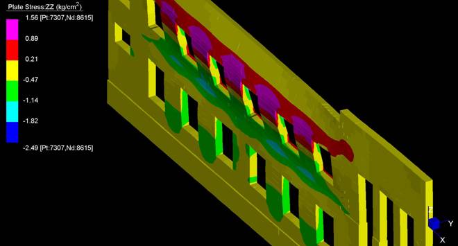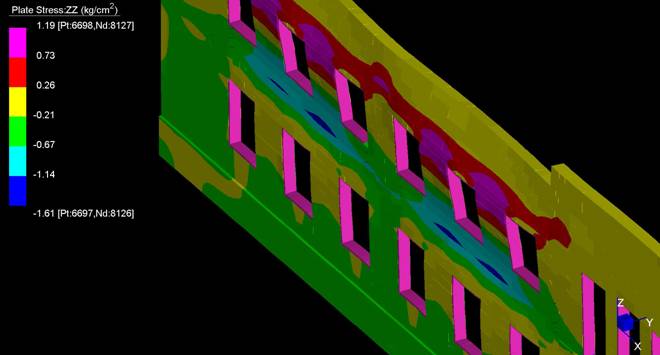 Figura 23 – Stato tensionale del nuovo solaio, all’interno della torre