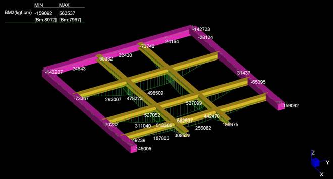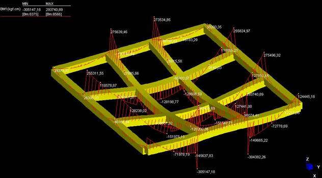 Figura 25– Diagramma dei momenti flettenti del nuovo graticcio di fondazione della torre