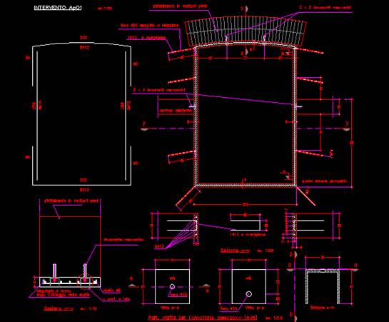 3. realizzazione di alcune aperture, delimitate da telai in c.c.a., che (diversamente dalle cerchiature di cui al p.to 6), assumono la funzione classica di equivalenza rispetto alla zona di muratura nel foro;