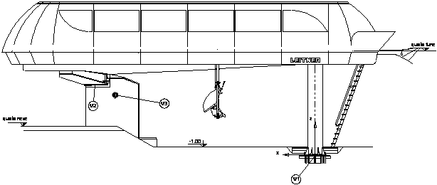 Il gruppo argano è disposto su un apposito carrello scorrevole sui correnti inferiori delle travi principali di stazione (stazione motrice sospesa).