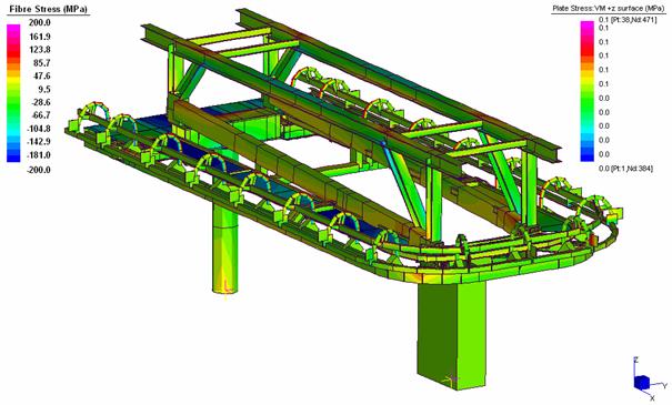 Nella verifica strutturale si considera un tiro fune nominale massimo di 800 kN ed un tiro fune nominale minimo di 280 kN, una coppia torcente massima in avviamento di 450 kNm ed una coppia torcente minima in avviamento di 200 kNm.
