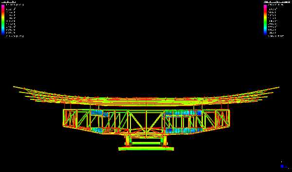 Oltre ai pesi propri, ai sovraccarichi di normativa ed al peso della neve, riveste particolare interesse l’azione del vento in particolare sul frangisole superiore che, data la leggerezza delle sue strutture portanti, può essere particolarmente sensibile alle azioni di tipo dinamico. E’ stata prevista a tale proposito una prova in galleria del vento (presso il Politecnico di Milano) per definire l’insieme delle azioni che il vento può esercitare sulla struttura a conferma dei dati assunti per il primo dimensionamento della struttura.