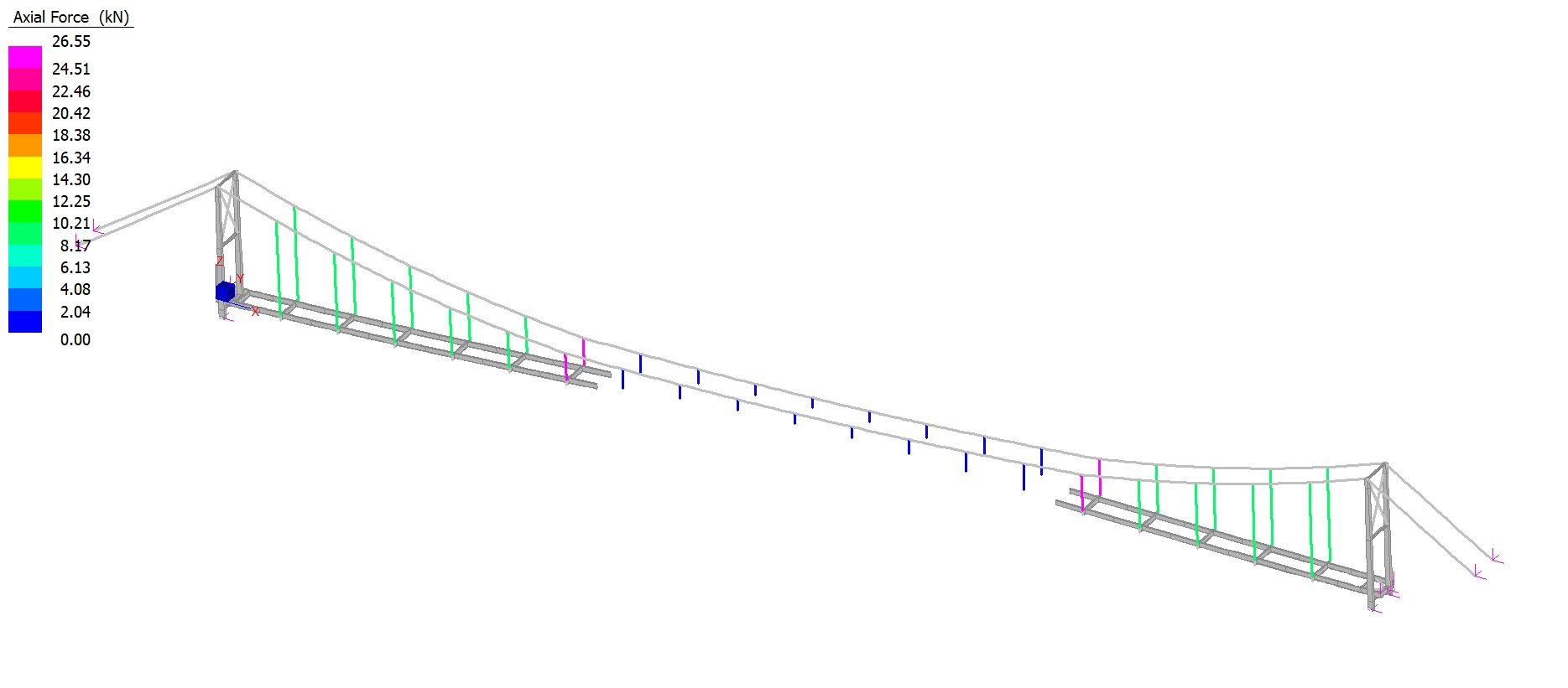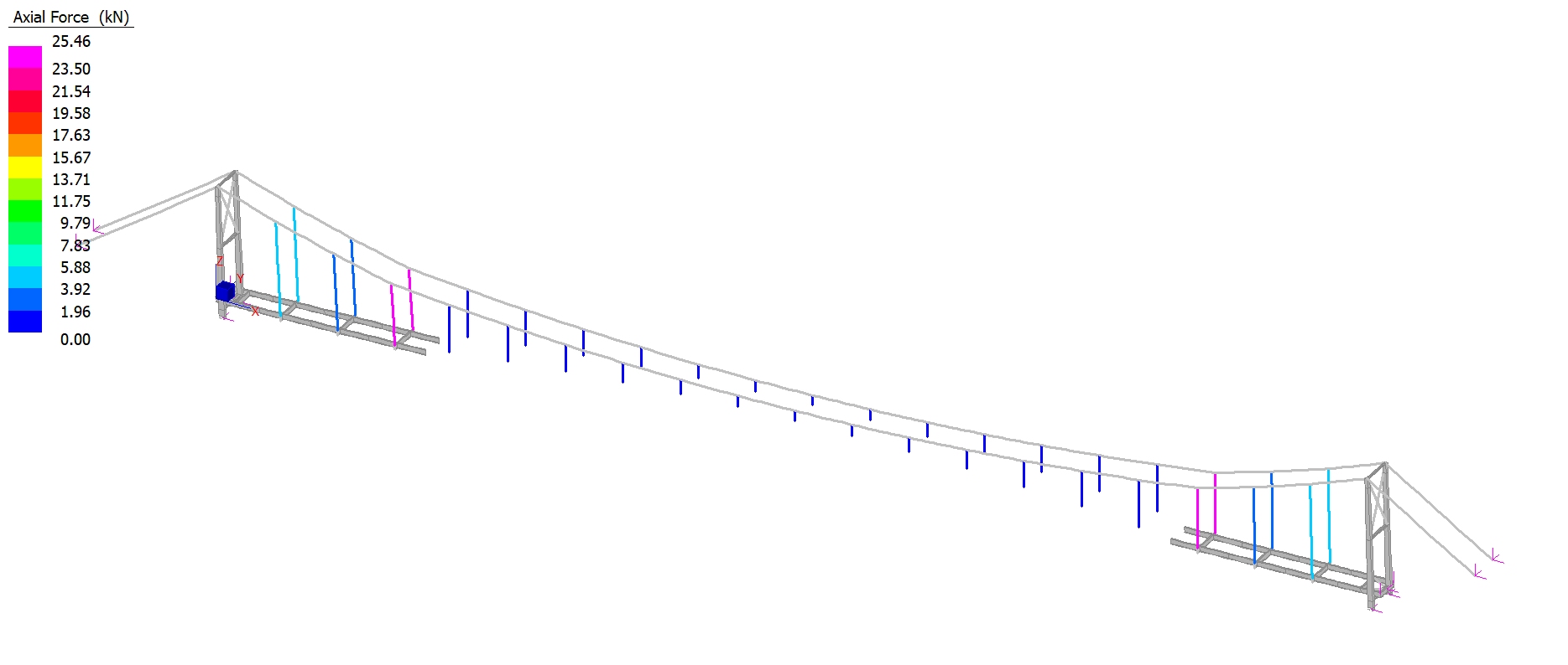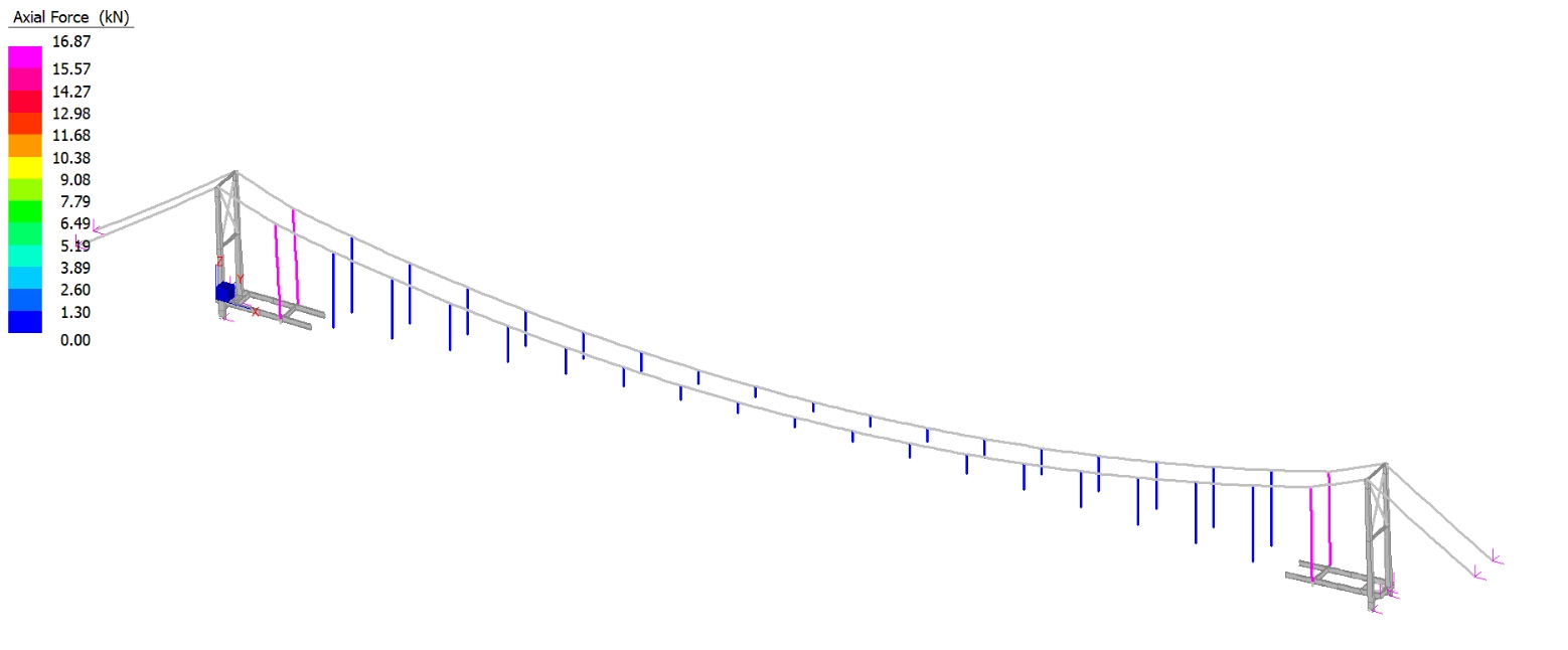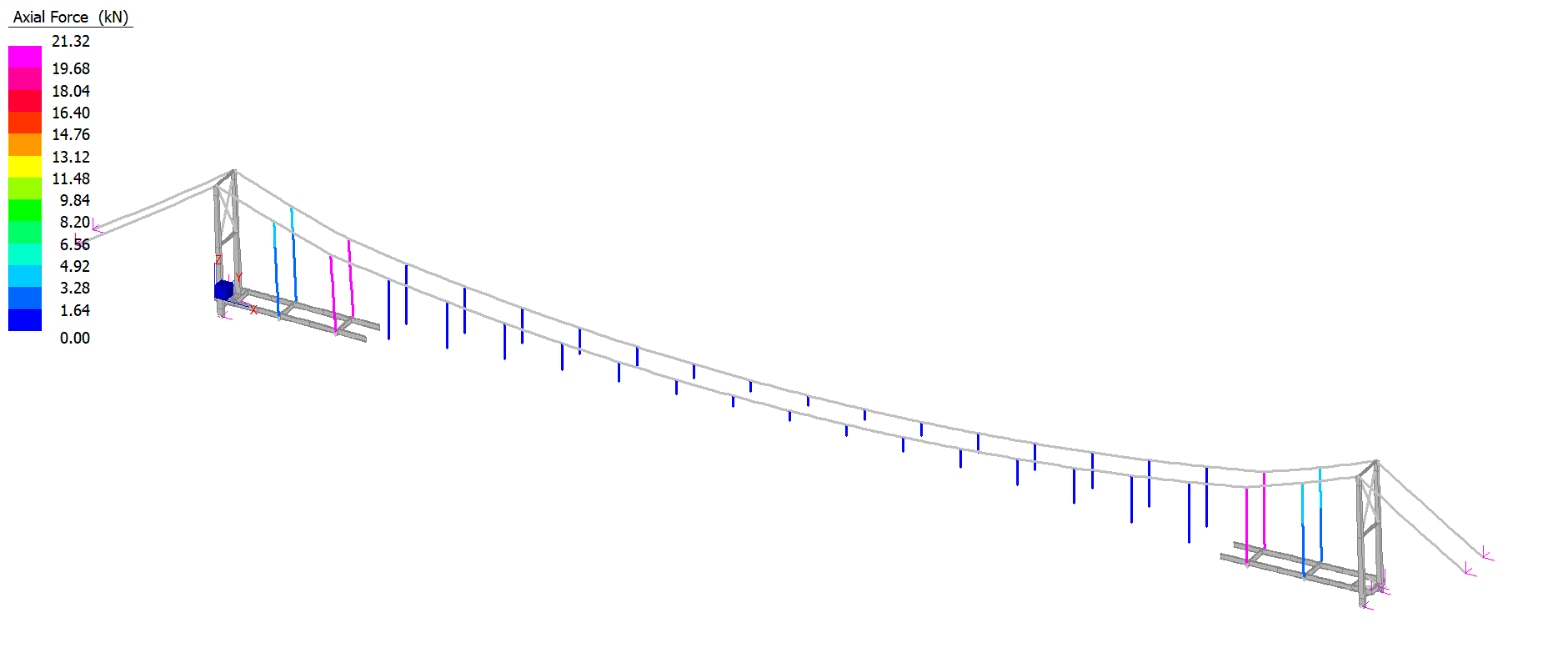 Sorge sospeso a 100 metri di altezza, sopra lo spettacolare orrido creato dal torrente Mallero in Valmalenco (SO), il ponte ciclopedonale che collega le localita' di Mossini e Ponchiera. L'opera commissionata dal Comune di Sondrio e' stata progettata da MAFFEIS ENGINEERING S.p.A., capogruppo del raggruppamento che comprende Studio Moncecchi Associati, Arch. Francesco Venzi e Se.i.co. e realizzata da C.M.M. F.lli Rizzi s.r.l. Durante tutto l'iter progettuale, che il raggruppamento ha seguito dal preliminare all'esecutivo, si sono indagate in modo approfondito tutte le specificita' di una struttura di questo tipo, soggetta alle azioni dinamiche indotte dal vento oltre che alla problematica del comfort della folla in attraversamento. L'architettura strutturale del ponte e' di tipo tensostrutturale, ovvero una passerella sospesa con funi superiori portanti principali e funi stabilizzanti inferiori secondarie. L'opera ha una luce di attraversamento di circa 146 mt ed una larghezza calpestabile di 2.90 mt. La struttura portante e' costituita da un impalcato in struttura metallica (costituito da due travi principali a doppio T ad anima inclinata) e soletta in calcestruzzo. L'impalcato e' connesso alle funi portanti mediante una pendinatura avente un passo di circa 7.20 mt. Al fine di ottenere una struttura stabile anche per le azioni laterali dovute al vento, sono state messe delle funi stabilizzanti disposte secondo una configurazione spaziale, inizialmente in equilibrio sotto le azioni di tensione iniziale dovute ai carichi permanenti. Il sistema di sospensione e' realizzato con funi costituite da fili di acciaio ad alta resistenza zincati a caldo. Sia le funi portanti (agganciate ai piloni alti 16 mt) sia i cavi stabilizzanti sono funi chiuse FLC, mentre le pendinature sono realizzate con funi spiroidali; i cavi portanti principali hanno un diametro di 80-84 mm, gli stabilizzanti 56 mm e le pendinature tra i 16 e i 20 mm. Le funi stabilizzanti sono caratterizzate da curvature nei piani verticali e orizzontali in modo da ottenere una risposta efficace contro le azioni dei carichi gravitazionali e le azioni di sollevamento e trascinamento indotte dal vento. E’ stato realizzato un modello FEM di calcolo Straus7 comprensivo di antenne, impalcato e cavi, non solo per il calcolo degli stati di esercizio, ma anche per la simulazione, tramite stage analysis di tutte le fasi di montaggio del ponte, permettendone la supervisione e il monitoraggio. Il modello e' stato realizzato mediante un approccio parametrico, mediante interfaccia Rhinoceros-Grasshopper resa possibile per mezzo di un codice personalizzato realizzato con l'opzione API (Application Program Interface) di Straus7. Testo, foto e immagine del modello di calcolo per gentile concessione di Maffeis Engineering Spa. |