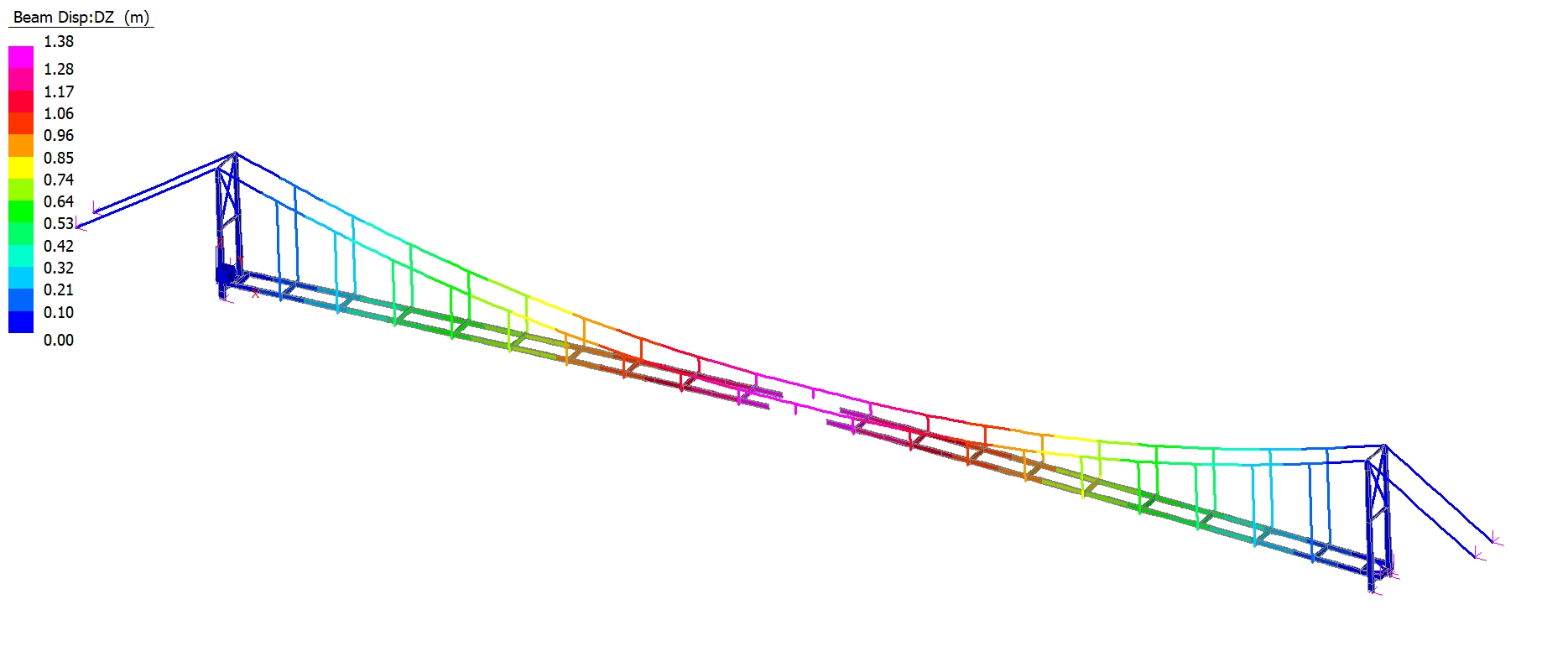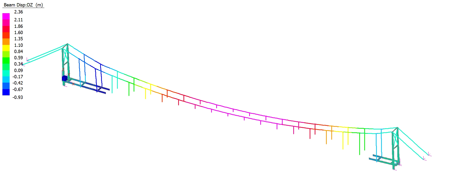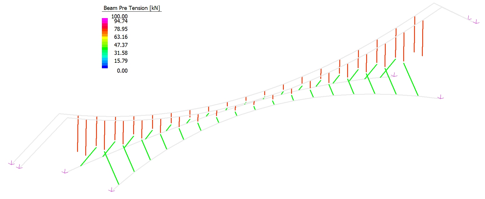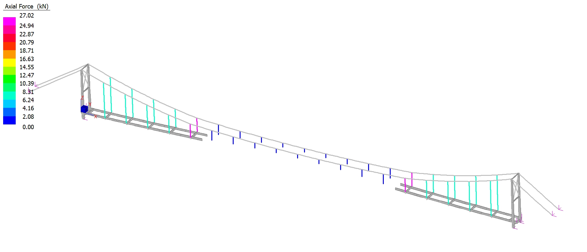 Sorge sospeso a 100 metri di altezza, sopra lo spettacolare orrido creato dal torrente Mallero in Valmalenco (SO), il ponte ciclopedonale che collega le localita' di Mossini e Ponchiera. L'opera commissionata dal Comune di Sondrio e' stata progettata da MAFFEIS ENGINEERING S.p.A., capogruppo del raggruppamento che comprende Studio Moncecchi Associati, Arch. Francesco Venzi e Se.i.co. e realizzata da C.M.M. F.lli Rizzi s.r.l. Durante tutto l'iter progettuale, che il raggruppamento ha seguito dal preliminare all'esecutivo, si sono indagate in modo approfondito tutte le specificita' di una struttura di questo tipo, soggetta alle azioni dinamiche indotte dal vento oltre che alla problematica del comfort della folla in attraversamento. L'architettura strutturale del ponte e' di tipo tensostrutturale, ovvero una passerella sospesa con funi superiori portanti principali e funi stabilizzanti inferiori secondarie. L'opera ha una luce di attraversamento di circa 146 mt ed una larghezza calpestabile di 2.90 mt. La struttura portante e' costituita da un impalcato in struttura metallica (costituito da due travi principali a doppio T ad anima inclinata) e soletta in calcestruzzo. L'impalcato e' connesso alle funi portanti mediante una pendinatura avente un passo di circa 7.20 mt. Al fine di ottenere una struttura stabile anche per le azioni laterali dovute al vento, sono state messe delle funi stabilizzanti disposte secondo una configurazione spaziale, inizialmente in equilibrio sotto le azioni di tensione iniziale dovute ai carichi permanenti. Il sistema di sospensione e' realizzato con funi costituite da fili di acciaio ad alta resistenza zincati a caldo. Sia le funi portanti (agganciate ai piloni alti 16 mt) sia i cavi stabilizzanti sono funi chiuse FLC, mentre le pendinature sono realizzate con funi spiroidali; i cavi portanti principali hanno un diametro di 80-84 mm, gli stabilizzanti 56 mm e le pendinature tra i 16 e i 20 mm. Le funi stabilizzanti sono caratterizzate da curvature nei piani verticali e orizzontali in modo da ottenere una risposta efficace contro le azioni dei carichi gravitazionali e le azioni di sollevamento e trascinamento indotte dal vento. E’ stato realizzato un modello FEM di calcolo Straus7 comprensivo di antenne, impalcato e cavi, non solo per il calcolo degli stati di esercizio, ma anche per la simulazione, tramite stage analysis di tutte le fasi di montaggio del ponte, permettendone la supervisione e il monitoraggio. Il modello e' stato realizzato mediante un approccio parametrico, mediante interfaccia Rhinoceros-Grasshopper resa possibile per mezzo di un codice personalizzato realizzato con l'opzione API (Application Program Interface) di Straus7. Testo, foto e immagine del modello di calcolo per gentile concessione di Maffeis Engineering Spa. |