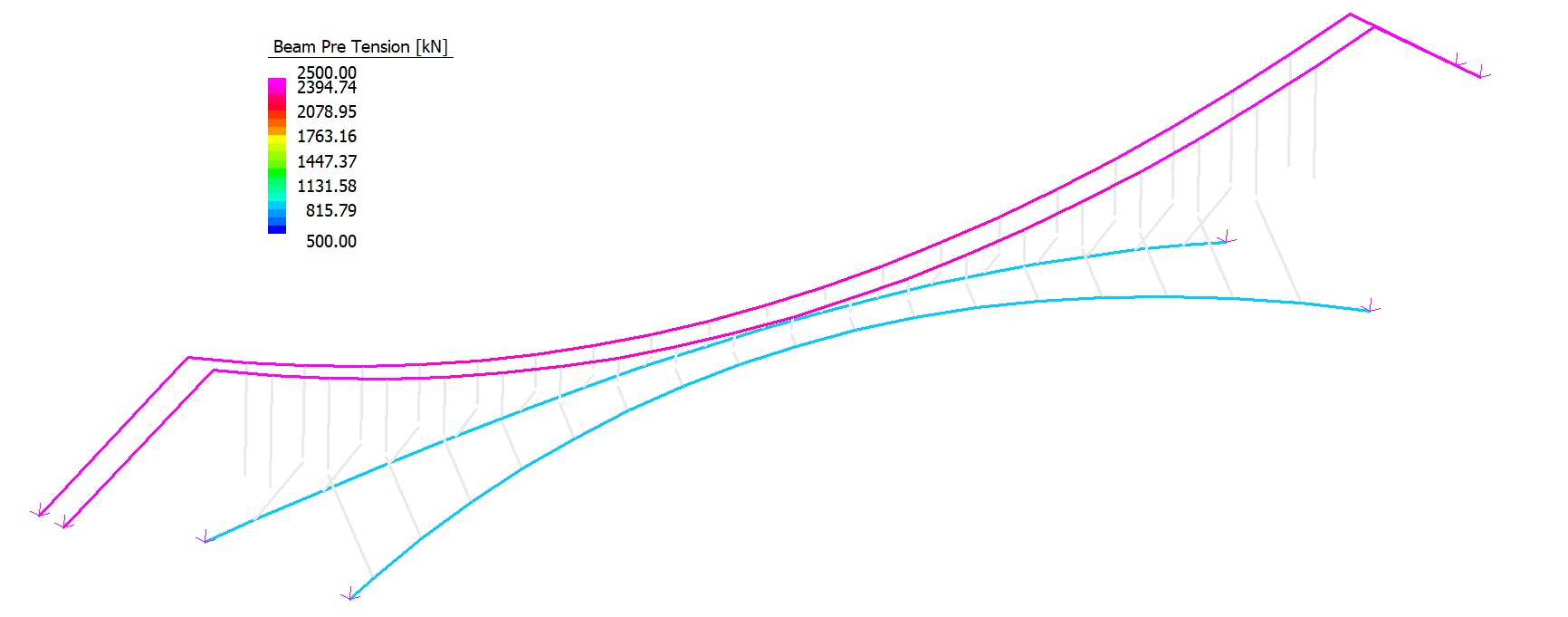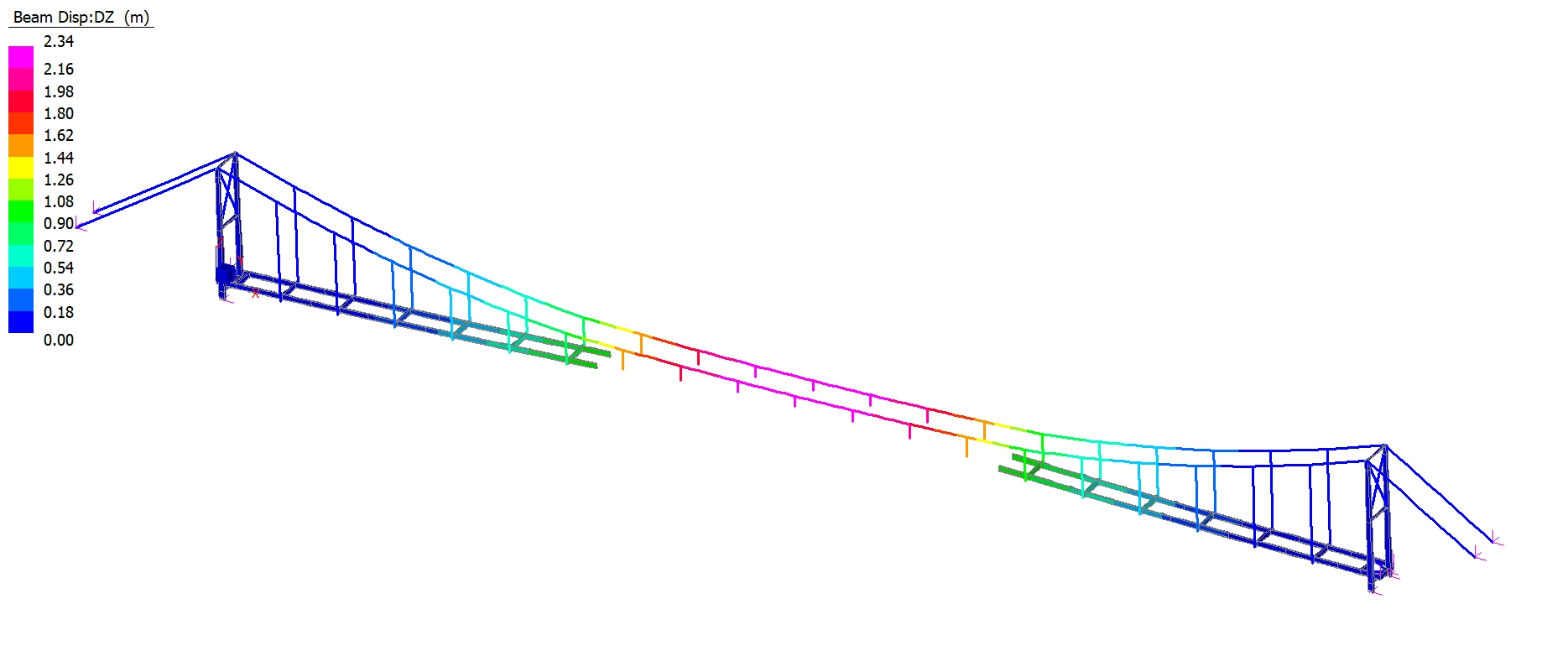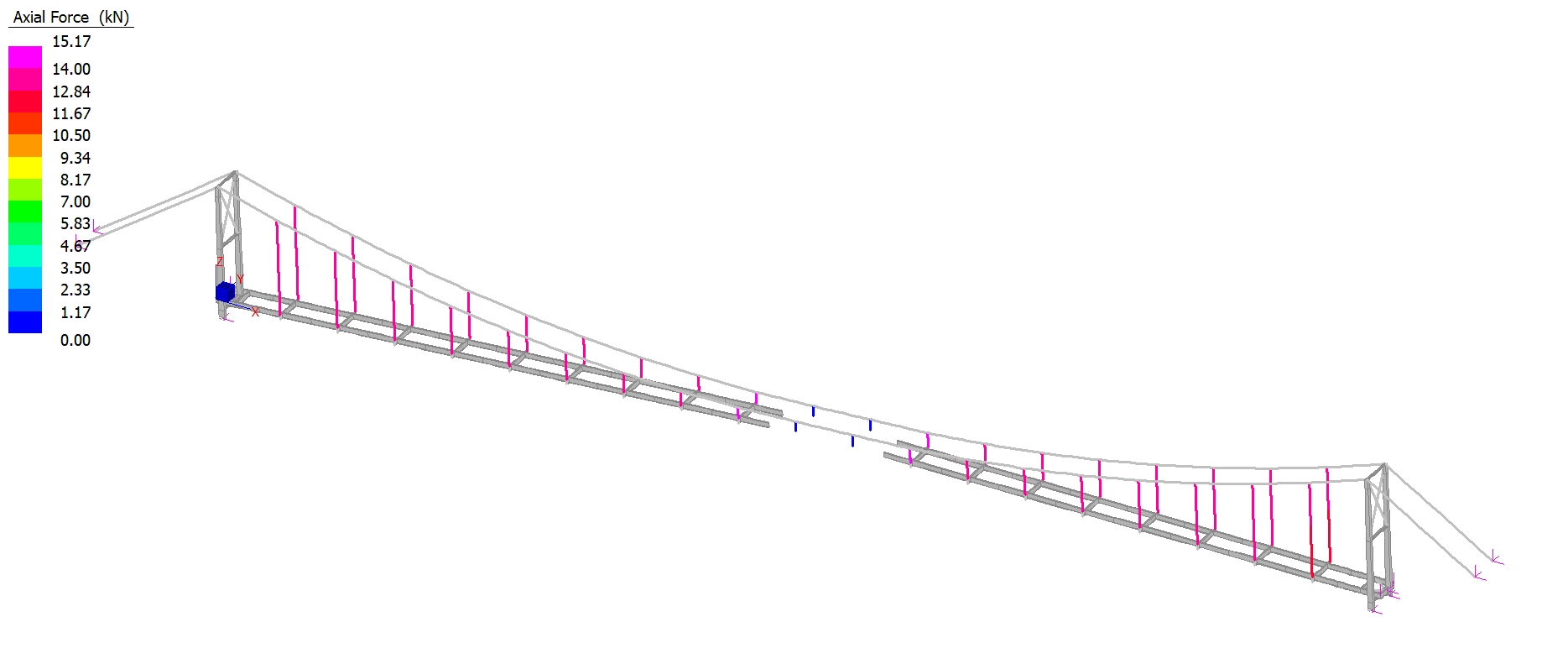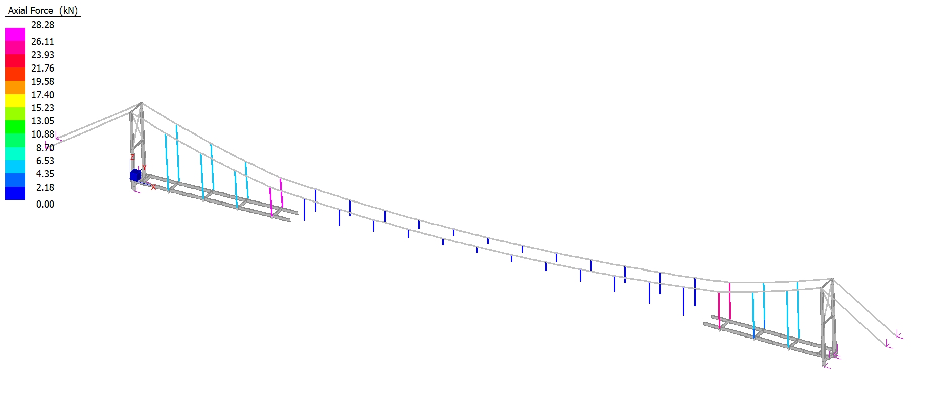 Sorge sospeso a 100 metri di altezza, sopra lo spettacolare orrido creato dal torrente Mallero in Valmalenco (SO), il ponte ciclopedonale che collega le localita' di Mossini e Ponchiera. L'opera commissionata dal Comune di Sondrio e' stata progettata da MAFFEIS ENGINEERING S.p.A., capogruppo del raggruppamento che comprende Studio Moncecchi Associati, Arch. Francesco Venzi e Se.i.co. e realizzata da C.M.M. F.lli Rizzi s.r.l. Durante tutto l'iter progettuale, che il raggruppamento ha seguito dal preliminare all'esecutivo, si sono indagate in modo approfondito tutte le specificita' di una struttura di questo tipo, soggetta alle azioni dinamiche indotte dal vento oltre che alla problematica del comfort della folla in attraversamento. L'architettura strutturale del ponte e' di tipo tensostrutturale, ovvero una passerella sospesa con funi superiori portanti principali e funi stabilizzanti inferiori secondarie. L'opera ha una luce di attraversamento di circa 146 mt ed una larghezza calpestabile di 2.90 mt. La struttura portante e' costituita da un impalcato in struttura metallica (costituito da due travi principali a doppio T ad anima inclinata) e soletta in calcestruzzo. L'impalcato e' connesso alle funi portanti mediante una pendinatura avente un passo di circa 7.20 mt. Al fine di ottenere una struttura stabile anche per le azioni laterali dovute al vento, sono state messe delle funi stabilizzanti disposte secondo una configurazione spaziale, inizialmente in equilibrio sotto le azioni di tensione iniziale dovute ai carichi permanenti. Il sistema di sospensione e' realizzato con funi costituite da fili di acciaio ad alta resistenza zincati a caldo. Sia le funi portanti (agganciate ai piloni alti 16 mt) sia i cavi stabilizzanti sono funi chiuse FLC, mentre le pendinature sono realizzate con funi spiroidali; i cavi portanti principali hanno un diametro di 80-84 mm, gli stabilizzanti 56 mm e le pendinature tra i 16 e i 20 mm. Le funi stabilizzanti sono caratterizzate da curvature nei piani verticali e orizzontali in modo da ottenere una risposta efficace contro le azioni dei carichi gravitazionali e le azioni di sollevamento e trascinamento indotte dal vento. E’ stato realizzato un modello FEM di calcolo Straus7 comprensivo di antenne, impalcato e cavi, non solo per il calcolo degli stati di esercizio, ma anche per la simulazione, tramite stage analysis di tutte le fasi di montaggio del ponte, permettendone la supervisione e il monitoraggio. Il modello e' stato realizzato mediante un approccio parametrico, mediante interfaccia Rhinoceros-Grasshopper resa possibile per mezzo di un codice personalizzato realizzato con l'opzione API (Application Program Interface) di Straus7. Testo, foto e immagine del modello di calcolo per gentile concessione di Maffeis Engineering Spa. |
