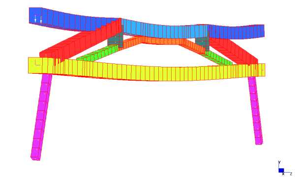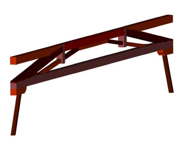 Il modello tridimensionale (fig 17) della struttura prevede una modellazione che rispecchia fedelmente la geometria della struttura sia per quanto riguarda le aste che penetrano l’una nell’altra, sia per quanto riguarda i denti dei nodi. Le aste della trave sono state collegate con particolari connettori, chiamati punti di contatto che lavorano solo a compressione e non a trazione.