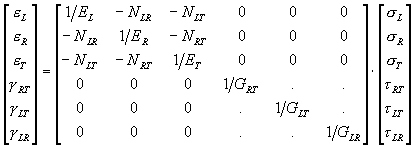 In tal modo la matrice di deformabilità che lega le tensioni alle deformazioni, risulta simmetrica (di ordine 6 x 6), come visto succede di regola nei materiali ortotropi: