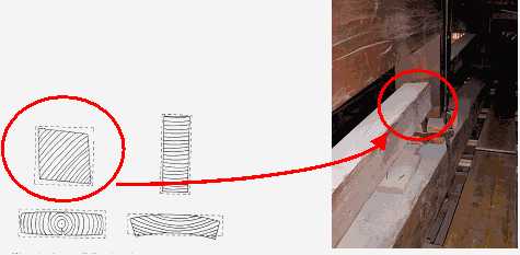 Dall’ispezione effettuata con il prof. Ceccotti del CNR – IVALSA è emerso che dall’aspetto delle fessure, dalla loro ampiezza e dalla loro lunghezza il legno è stato messo in opera non stagionato (con umidità interna pari a circa il 14%) e con il passare del tempo si è asciugato arrivando ad avere una umidità propria del 9%. Questo fenomeno di diminuzione dell’umidità interna è stato accentuato negli ultimi anni dalla realizzazione dell’impianto di riscaldamento che ha notevolmente cambiato le condizioni all’interno dell’ambiente in cui si trova la trave oggetto di studio.