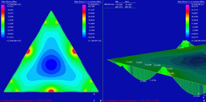 Inoltre è stato indagato lo stato tensionale all’interno dei singoli pannelli di vetro mediante la messa a punto di un modello numerico per la schematizzazione del telaio in alluminio di supporto al pannello e del pannello stesso; quest’ultimo è stato modellato mediante elementi plate aventi spessore equivalente, in termini di comportamento flessionale, a quello della stratificazione di due lastre in vetro 10+6 mm con interposto strato di PVB.
