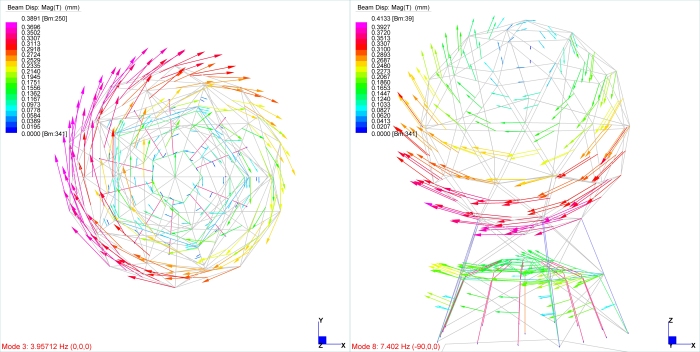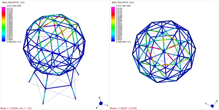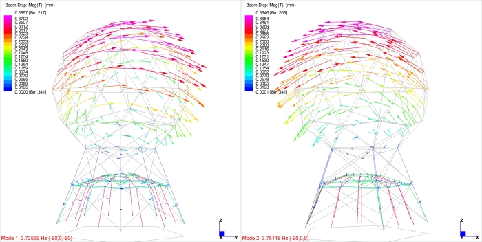 Sul modello è stata eseguita un’analisi statica lineare, un’analisi dinamica lineare con spettro di risposta ed un’analisi di buckling per saggiare la sensibilità della struttura a fenomeni di instabilità globale.