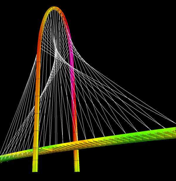 Fig.3 - Modello in Straus7 del ponte centrale di scavalcamento