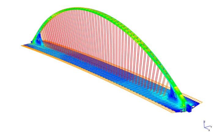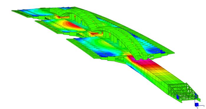 Fig.4 - Modello in Straus7 del ponte di scavalcamento durante il varo