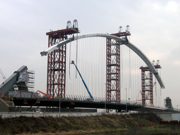 Oggi la sfida si è spostata in Italia dove la Cimolai, sempre con la collaborazione dello studio Romaro, sta realizzando un viadotto composto di tre ponti in serie, uno centrale ad arco di 221 m di luce e due strallati di 180 m di luce (fig. 1).