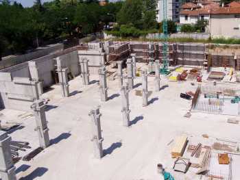 Viste le ragguardevoli dimensioni dell’ edificio è stato necessario considerare gli effetti delle azioni termiche mentre si è utilizzato calcestruzzo a ritiro compensato per la realizzazione delle solette collaboranti.