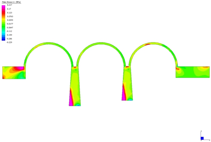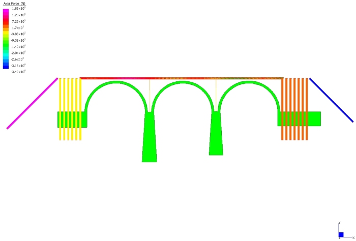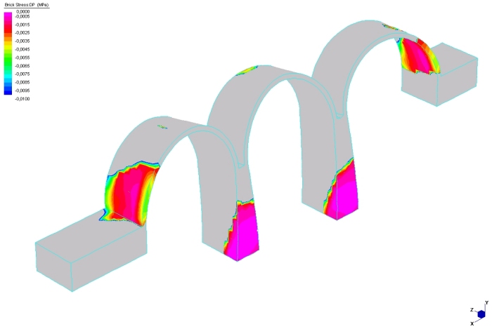 I ponti ad arco in muratura sono un patrimonio culturale dell’Italia. Per questo devono essere preservati. In questo lavoro viene effettuata una valutazione della resistenza sismica del ponte sul torrente Gresal (Belluno). Viene descritto inoltre il miglioramento strutturale apportato dal sistema di rinforzo sismico a cui è stato sottoposto il ponte. Tramite modelli FEM (con Straus7 release 2.4), opportunamente calibrati sulla base di analisi parametriche, si è potuto effettuare l’analisi di pushover che ha dimostrato la vulnerabilità sismica del ponte. Conoscendo il comportamento sismico ed i meccanismi di collasso del ponte si possono effettuare delle opportune scelte progettuali. Successivamente la modellazione ha confermato che dopo l’intervento il ponte è in grado di resistere all’azione sismica. |