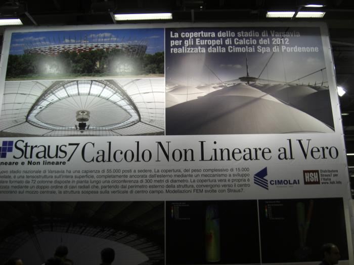 La copertura, del peso complessivo di 15.000 tonnellate, è una tensostruttura sull'intera superficie, completamente ancorata dall'esterno mediante un meccanismo a sviluppo circolare formato da 72 colonne (profilo CHS 1016mm x 30÷70mm) disposte in pianta lungo una circonferenza di 300 metri di diametro, un anello di contrasto detto compression ring (profilo CHS 1820mm x 80mm), pennoni di appensione dei cavi, detti inclined struts (profilo CHS da 1200 a 600mm x 35÷45mm), contrasti di ancoraggio esterno, detti facade tie (profilo CHS 508mm x 20÷50mm).